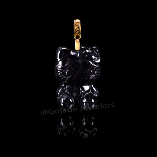 The Kitty Cat Jadeite 100% Natural Burma Jade Jadeite With Certificated (S925 Silver Buckle)