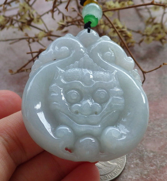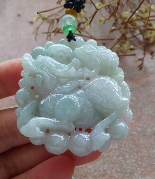 Certified Green Burma 100% Natural A Jade jadeite Pendant Dragon Pi Xiu Bead Necklace 风水貔貅 642899 TN