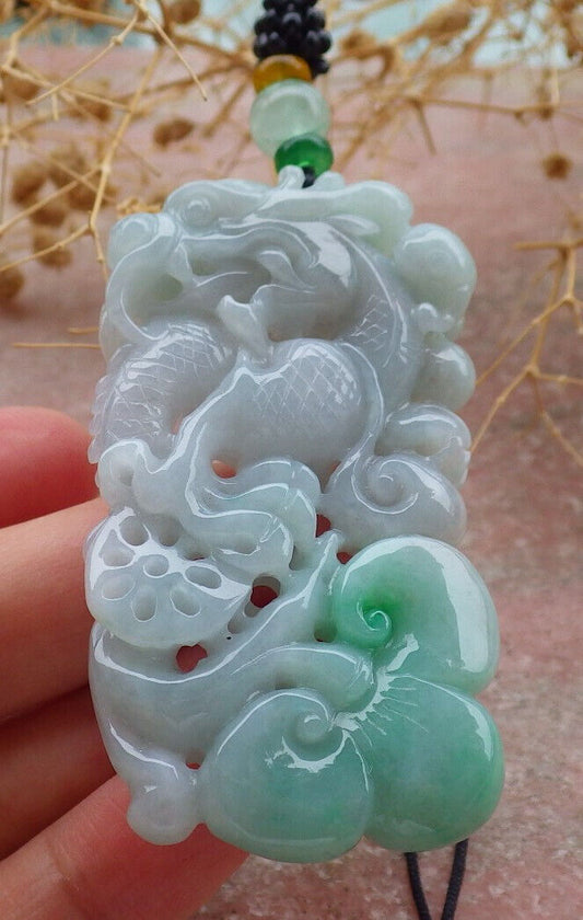 Certified Green Burma 100% Natural A Jade jadeite Pendant Dragon Necklace 生意兴隆 648492 TN