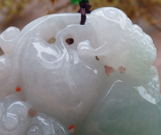 Certified Green Burma 100% Natural A Jade jadeite Pendant Dragon Mouse Rat Peanut Ruyi Necklace 望子成龙 651624 TN
