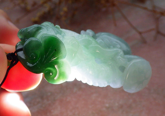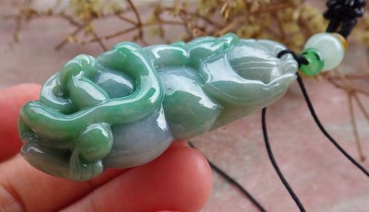 Certified Green Burma 100% Natural A Jade jadeite Pendant Dragon Kai Lun Frog Toad Gourd Necklace 630456 TN