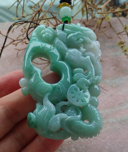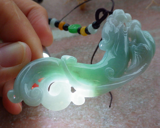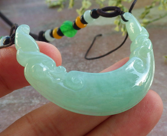 Certified Green Burma 100% Natural A Jade jadeite Pendant Dragon Ruyi Necklace 生意兴隆 633508 TN