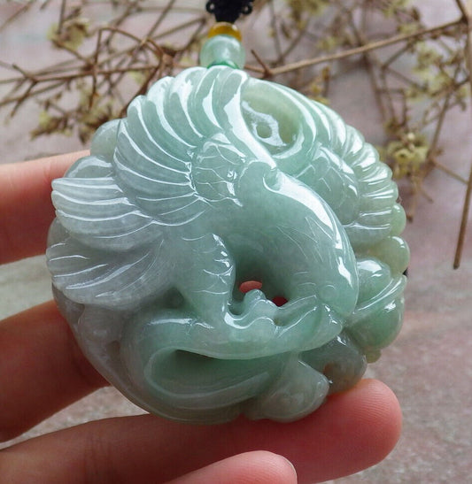 Certified Green Burma 100% Natural A Jade jadeite Pendant Eagle Snake Coin Necklace 大展宏图 633423 TN