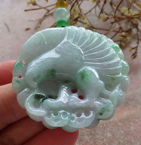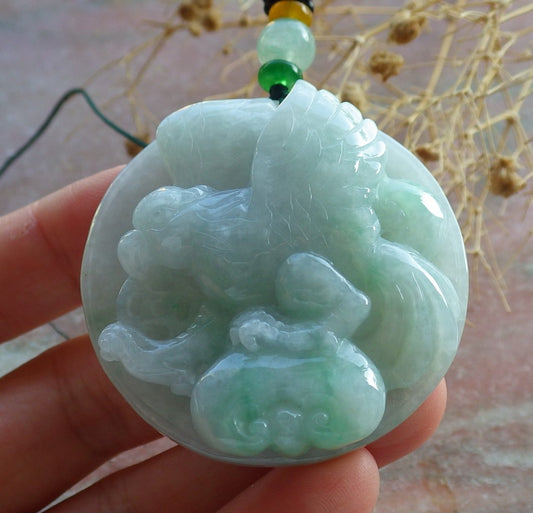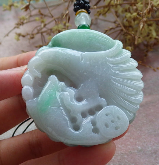 Certified Green Burma 100% Natural A Jade jadeite Pendant Eagle Fish Coin Necklace 大展宏图 630322 TN