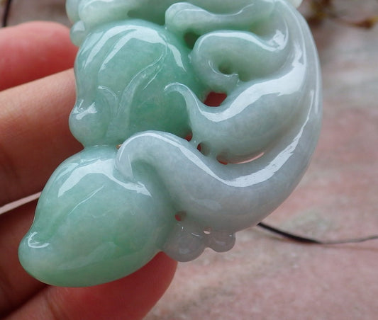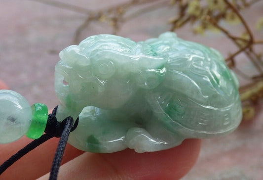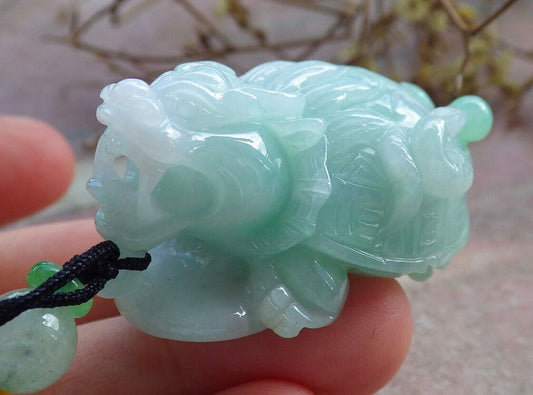 Certified Green Burma 100% Natural A Jade jadeite Pendant Dragon Turtle Snake Coin Necklace 龙龟 632936 TN