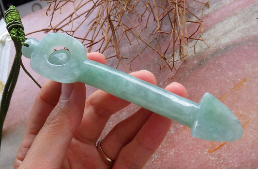 Certified Green 100% Natural A Jade jadeite Pendant Arrow Bead Necklace 箭 528445 TN