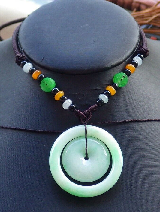 Certified Green 100% Natural A Jade jadeite Pendant Circle Donut Necklace 母子平安扣 528770 TN