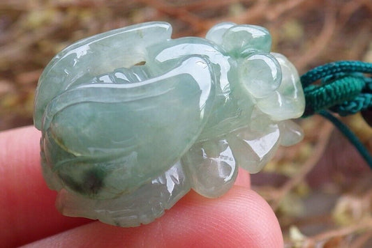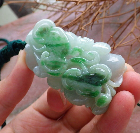 Certified Green 100% Natural A Jade jadeite Pendant Bat Peach Lotus Flower Ruyi Necklace 蝙蝠 525591 TN