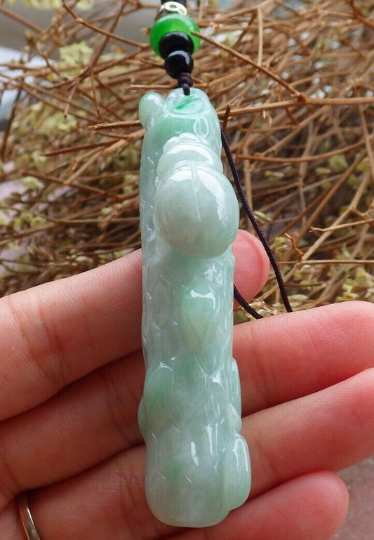 Certified Green 100% Natural A Jade jadeite Pendant Bat Peach Necklace 蝙蝠 528196 TN