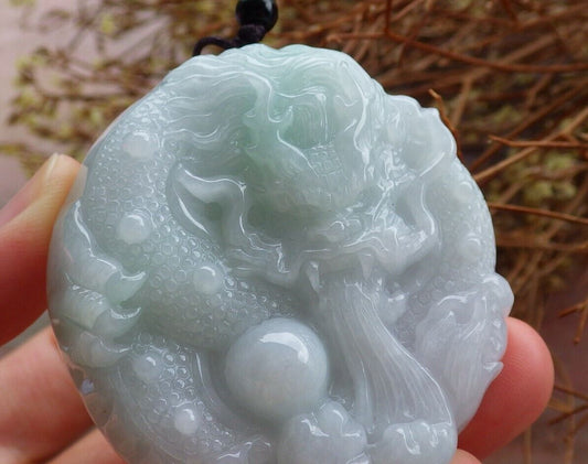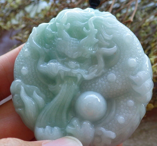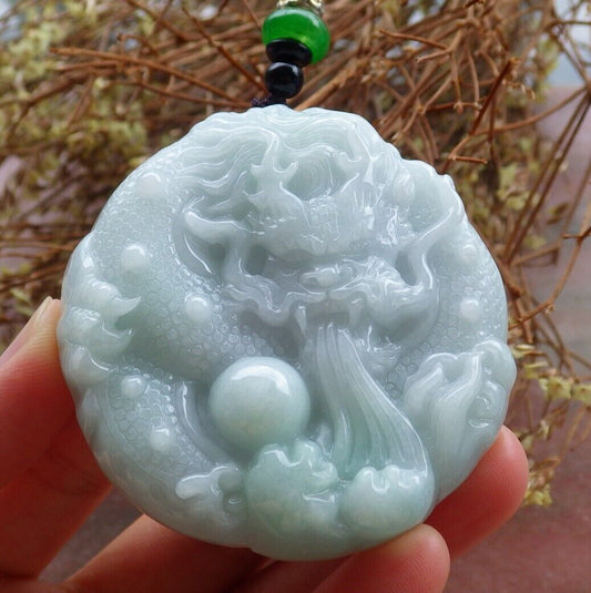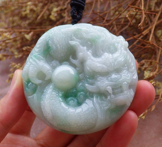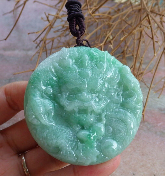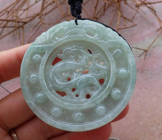 Certified Green 100% Natural A Jade jadeite pendant Dragon Circle Necklace 生意兴隆 528221 TN