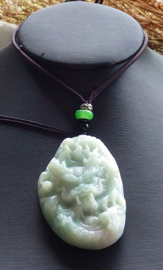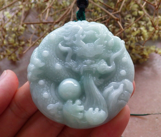 Certified Green 100% Natural A Jade jadeite Pendant Dragon Bead Necklace 生意兴隆 528146 TN