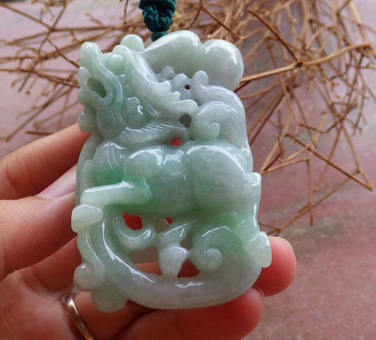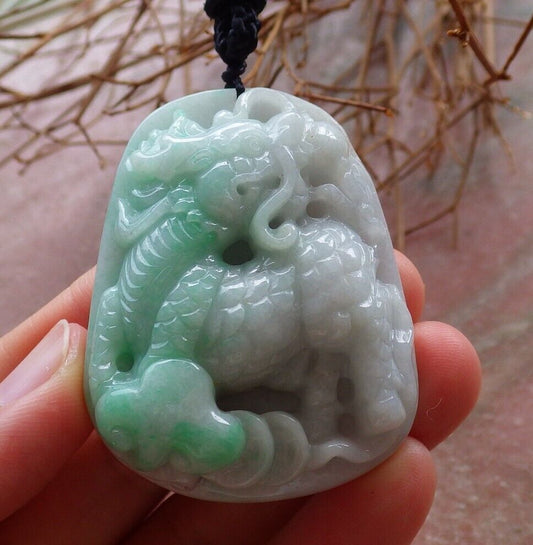 Certified Green 100% Natural A Jade jadeite pendant Dragon Kai Lun Ruyi Coin Necklace 龙 麒麟 525954 TN
