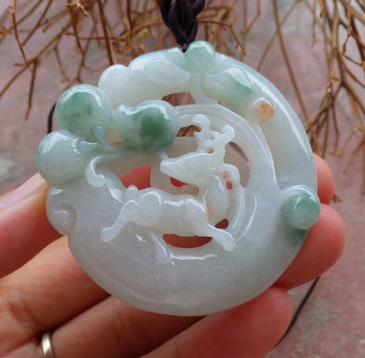 Certified Green 100% Natural A Jade jadeite Pendant Deer Peach Lotus Flower Ruyi Necklace 梅花鹿 526039 TN