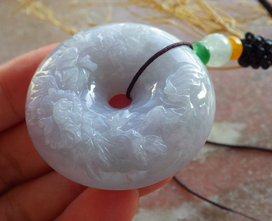 Certified Lavender Green Burma 100% Natural A Jade jadeite Pendant Butterfly Flower Circle Necklace 平安扣 639953 TN