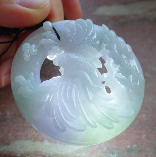 Certified Lavender Green Burma 100% Natural A Jade jadeite Pendant Eagle Tree Circle Necklace 大展宏图 640069 TN