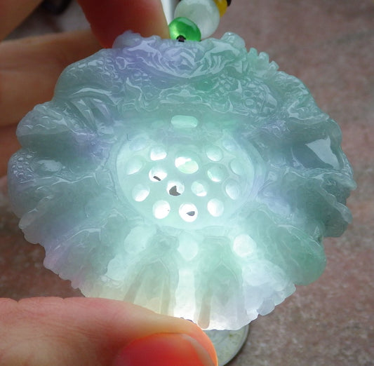 Certified Lavender Green Burma 100% Natural A Jade jadeite pendant Beetle Flower Necklace 花开富贵 649663 TN