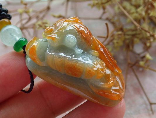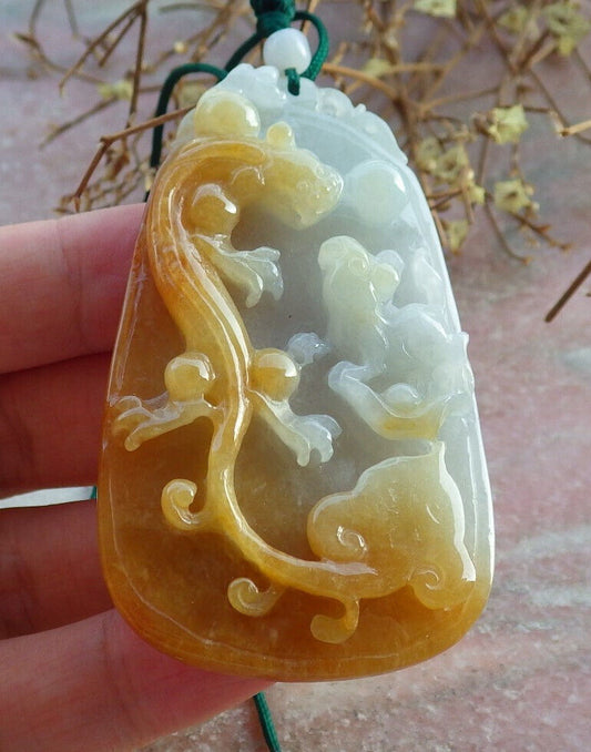 Certified Yellow Burma 100% Natural A Jade jadeite Pendant Dragon Pi Xiu Mouse Rat Ruyi Bead Necklace 风水貔貅 634137 TN
