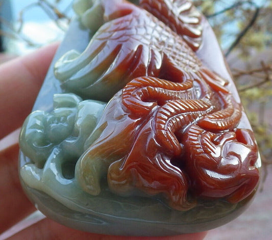 Certified Red Green Burma 100% Natural A Jade jadeite pendant Sun Wu Kong God Dragon Necklace 孙悟空 644464 TN