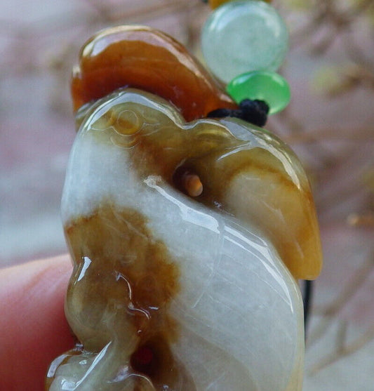 Certified Red Green Burma 100% Natural A Jade jadeite Pendant Phoenix Monkey Flower Ruyi Necklace 凤凰 641671 TN