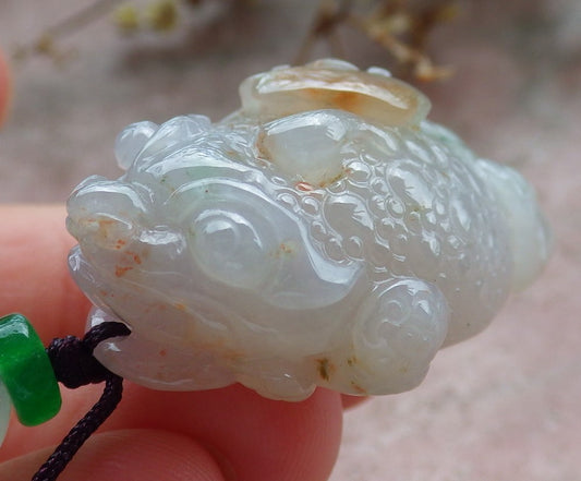 Certified Red Green Lavender Burma 100% Natural A Jade jadeite Pendant Frog Toad Coin Ruyi Necklace 招财蟾 631132 TN