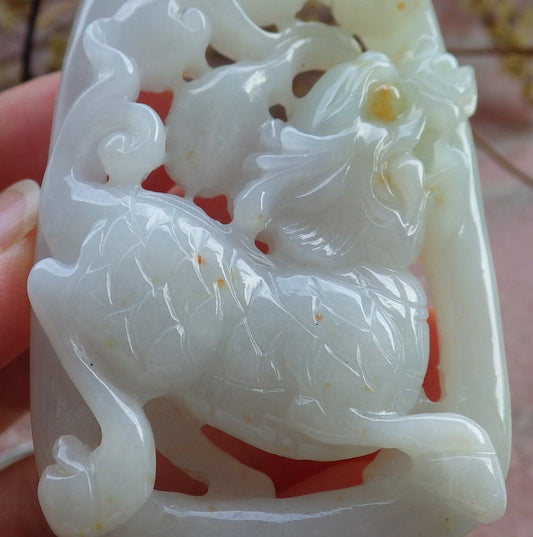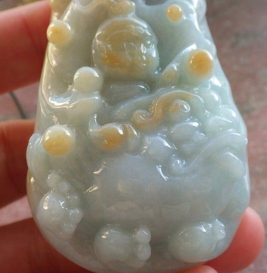 Certified Yellow Burma 100% Natural A Jade jadeite Pendant Dragon Kai Lun Ruyi Necklace 生意兴隆 631234 TN