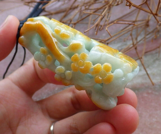 Certified Yellow Green 100% Natural A Jade jadeite Pendant Deer Flower Ruyi Necklace 梅花鹿 526346 TN