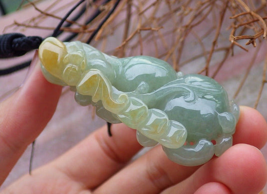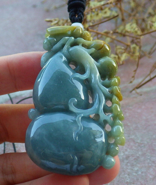 Certified Yellow Green 100% Natural A Jade jadeite Pendant Bat Gourd Lotus Flower Ruyi Necklace 蝙蝠 528172 TN