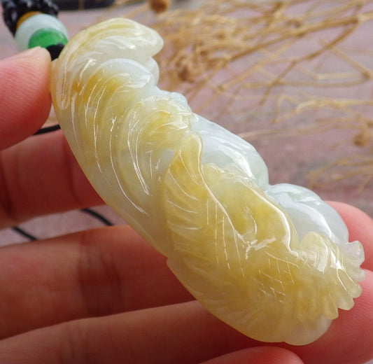 Certified Yellow Burma 100% Natural A Jade jadeite Pendant Phoenix Peach Necklace 凤凰 639288 TN
