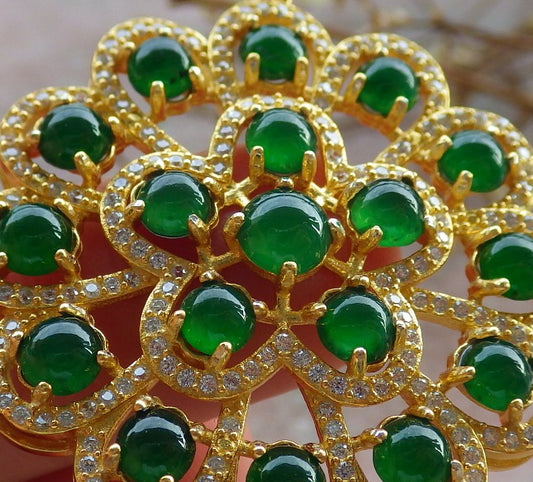 Icy Green Silver 925 Certified Burma 100% Natural A JADE Jadeite pendant Cabochon Flower Necklace 花开富贵 634710 TN