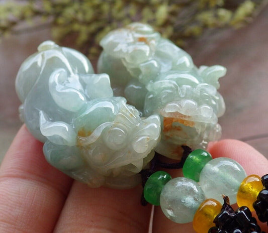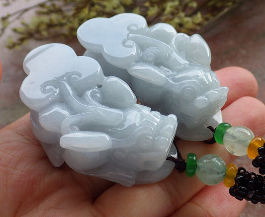 Pair Certified Pale Green Lavender Burma 100% Natural A Jade jadeite Pendant Dragon Pi Xiu Money Coin Ruyi Necklace 风水貔貅 573973 TN
