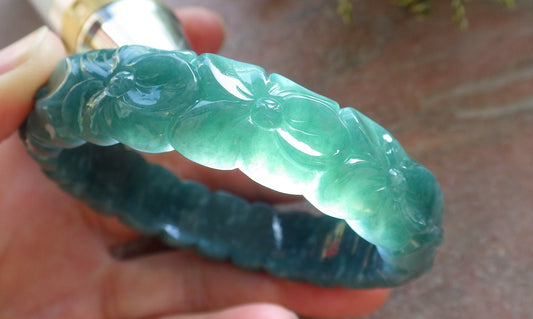 Certified Icy Green Burma 100% Natural A JADE Jadeite Flower Bangle Bracelet 57 mm 643784 TN