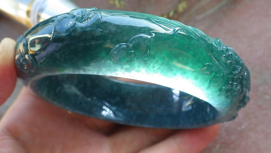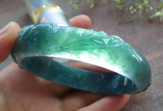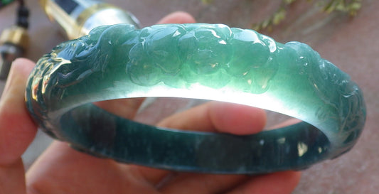 Certified Icy Green Burma 100% Natural A JADE Jadeite peacock Phoenix Flower Bangle Bracelet 65 mm 手镯 640394 TN