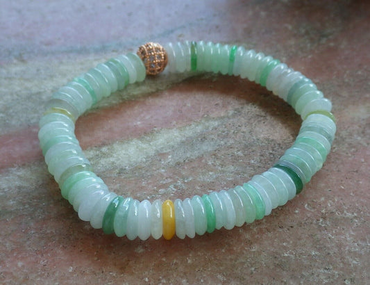 Certified Yellow Green Pale Lavender 100% Natural A JADE Jadeite Bead Beads Bangle Circle Bead Beads Bangle Bracelet 平安扣手链 524567 TN