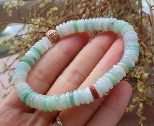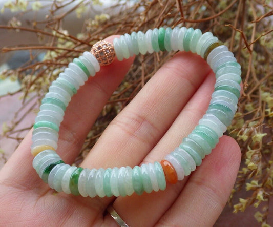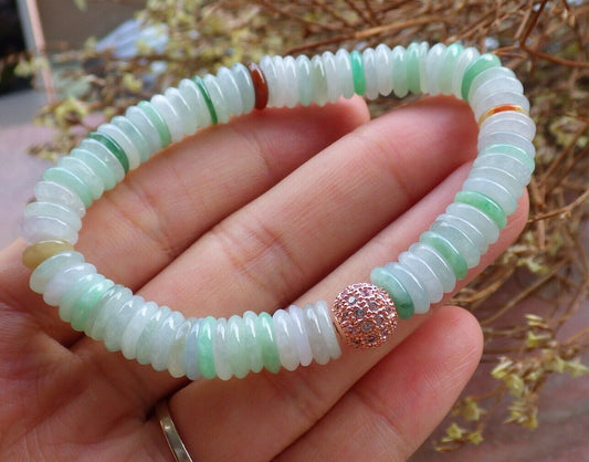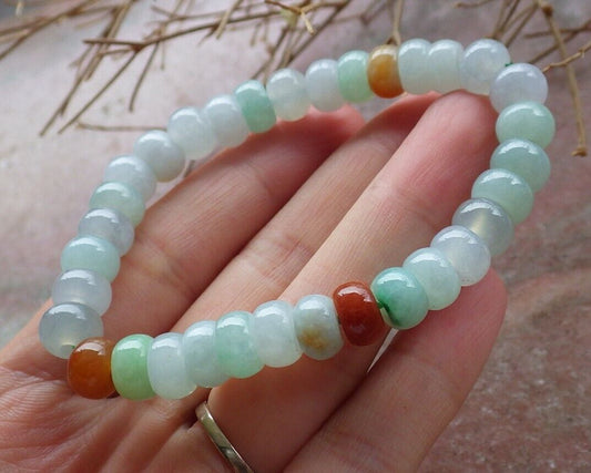 Certified Yellow Green Pale Lavender 100% Natural A JADE Jadeite Bead Beads Bangle Circle Bead Beads Bangle Bracelet 平安扣手链 524993 TN