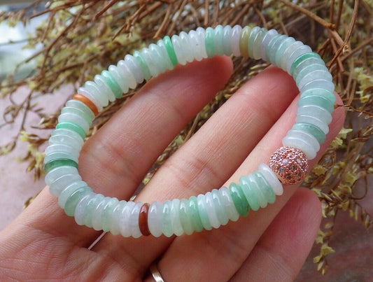 Certified Yellow Green Pale Lavender 100% Natural A JADE Jadeite Bead Beads Bangle Circle Bead Beads Bangle Bracelet 平安扣手链 525015 TN