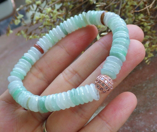 Certified Green 100% Natural A JADE Jadeite Bead Beads Bangle Circle Bracelet 手链 517569 ** It can adjust 6.5 inches to 8 inches TN