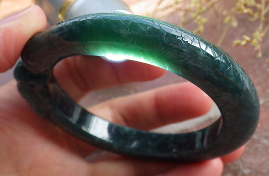 Certified Icy Green Burma 100% Natural A JADE Jadeite Dragon Bangle Bracelet 56 mm 手镯 651644 TN