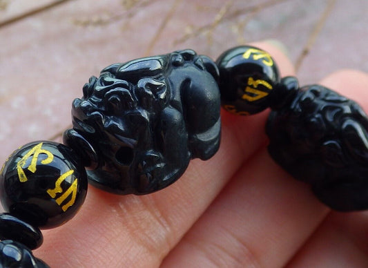 Certified Green Black Burma 100% Natural A JADE Jadeite Bead Beads Bangle Dragon Pi Xiu Coin Bracelet 墨翠风水貔貅手链 565180 TN
