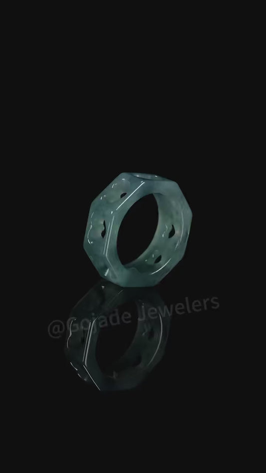 Certified Icy Blue Money Ring Burma 100% Natural A JADE Jadeite Circle RING 💲美金戒指 US