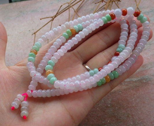 Certified Green Red Icy Pale Lavender Burma 100% Natural A JADE Jadeite Bead beads Necklace 24 inches 项链 495917 TN