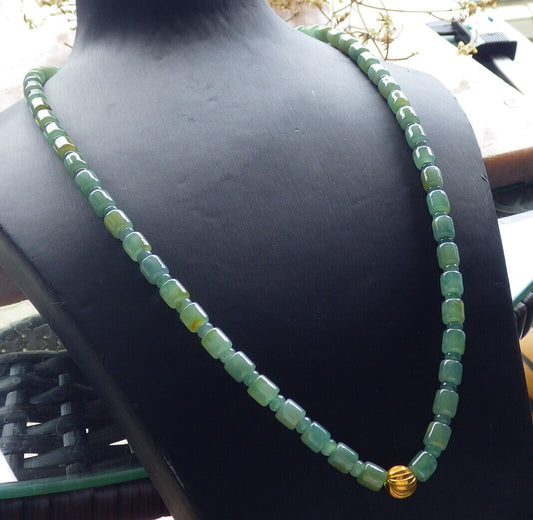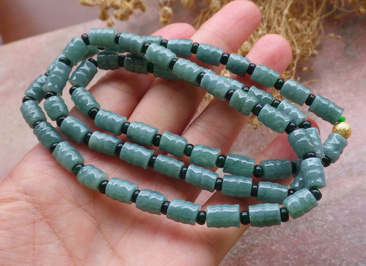 Certified Green Burma 100% Natural A JADE Jadeite bead Beads Circle Bamboo Necklace 24 inches 项链 648689 TN