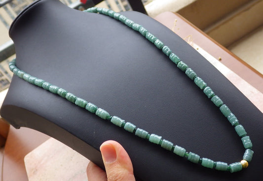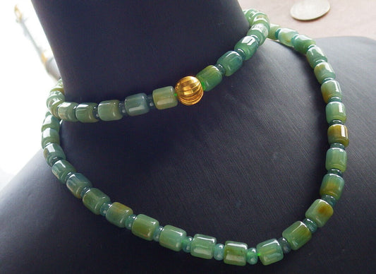 Certified Green Burma 100% Natural A JADE Jadeite bead Beads Circle Bamboo Necklace 24 inches 项链 648665 TN