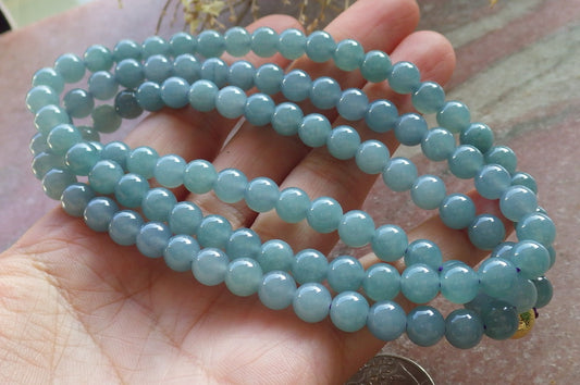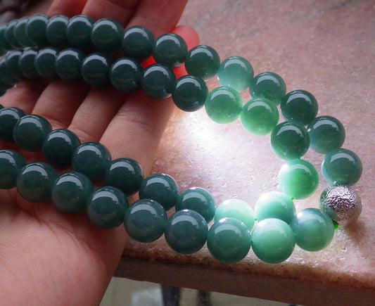 Certified Icy Green Burma 100% Natural A JADE Jadeite Bead Beads Necklace 27 inches 项链 650685 TN