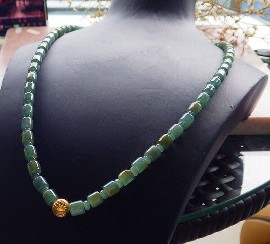 Certified Icy Yellow 100% A JADE Jadeite Beads Circle Necklace 25 inches 617558 TN