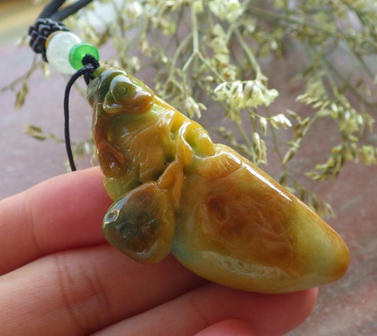 Certified Green Yellow Burma 100% Natural A Jade jadeite Pendant Monkey Peach Leaf Necklace 猴子 640508 TN