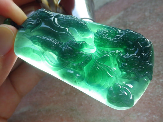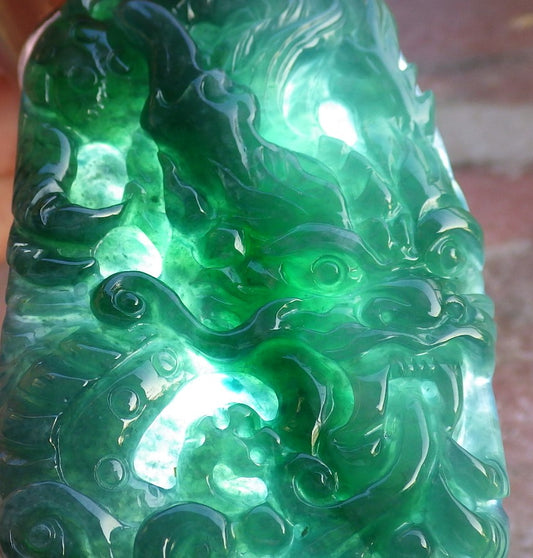 Certified Icy Green Burma 100% Natural A Jade jadeite Pendant Dragon Ruyi Necklace 生意兴隆 641163 TN