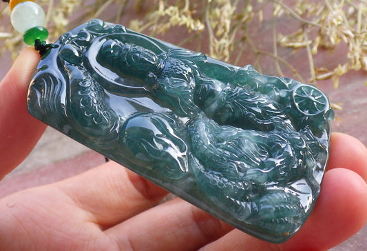 Certified Icy Green Burma 100% Natural A Jade jadeite Pendant 9 Dragon Bead Necklace 九龙戏珠 641302 TN