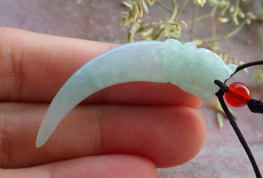Certified Green Burma 100% Natural A Jade jadeite Pendant Dragon tooth Necklace 龙牙 641033 TN
