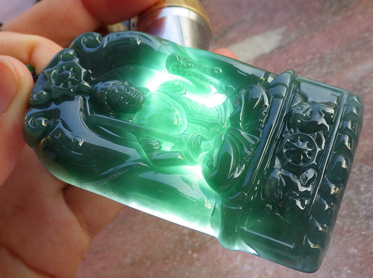 Certified Icy Green Burma 100% Natural A Jade jadeite Pendant Buddha God Sword Necklace 佛 641155 TN