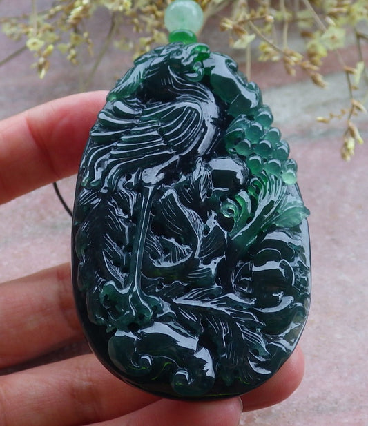 Certified Icy Green Burma 100% Natural A Jade jadeite Pendant Phoenix Flower Ruyi Bead Necklace 凤凰 650200 TN